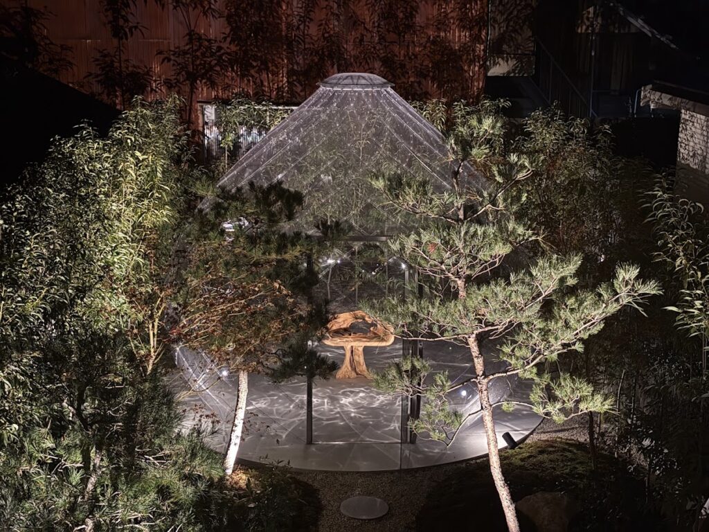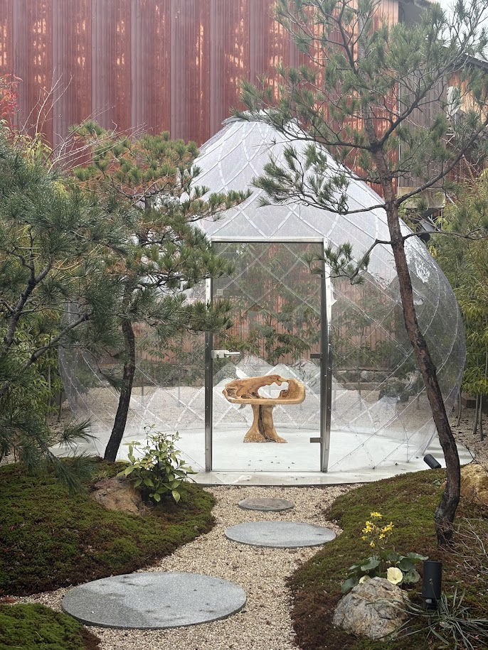 2025年10月29日にグランドオープン、ワットソップカフェのお庭に設置された Aura Zome 。周囲の美しい緑と驚くほど自然に馴染み、庭全体の景観を引き立て、訪れる人の視線を自然と引き寄せます。