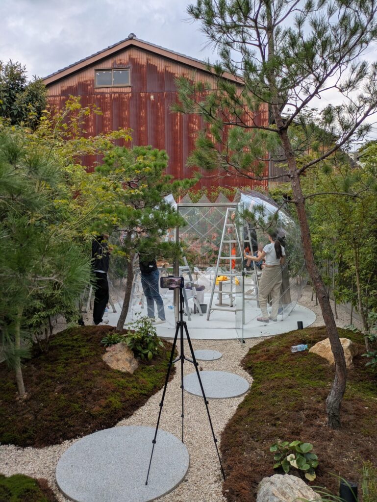 カフェの庭に置かれることで、独立した存在でありながら、風景の一部として機能するのもAura Zomeならではの魅力です。