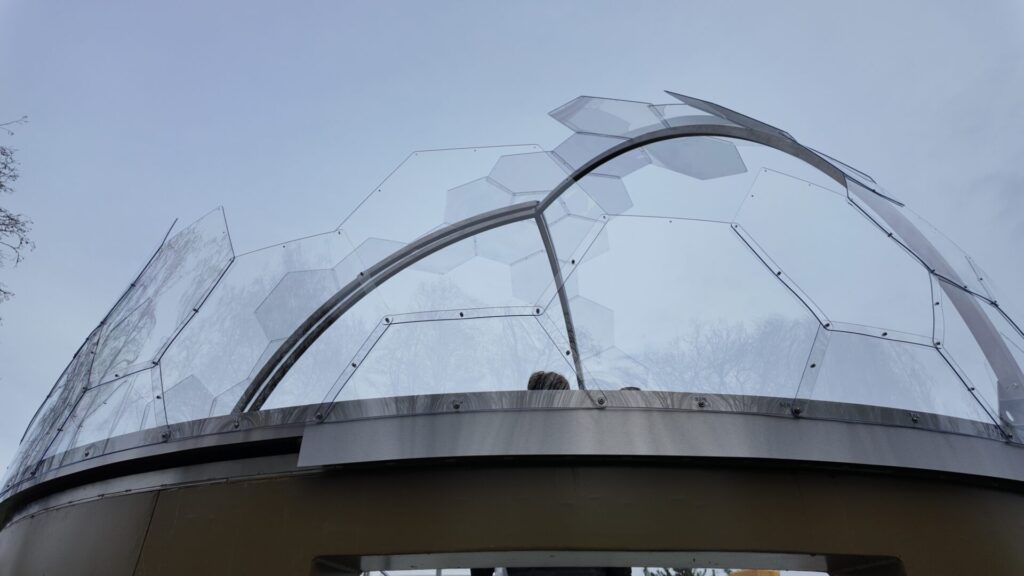 構造にはスチールフレームを採用し、外装にはポリカーボネート製の六角形パネルを使用しています。