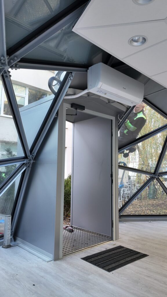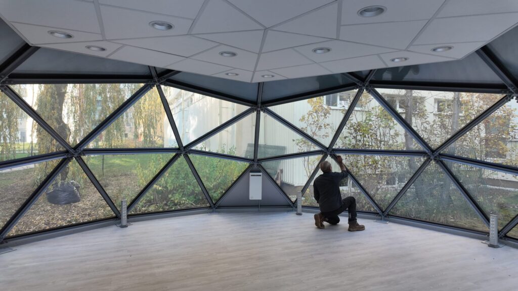 教育施設向けに設計された、直径8mのガラスドームの施工事例です。