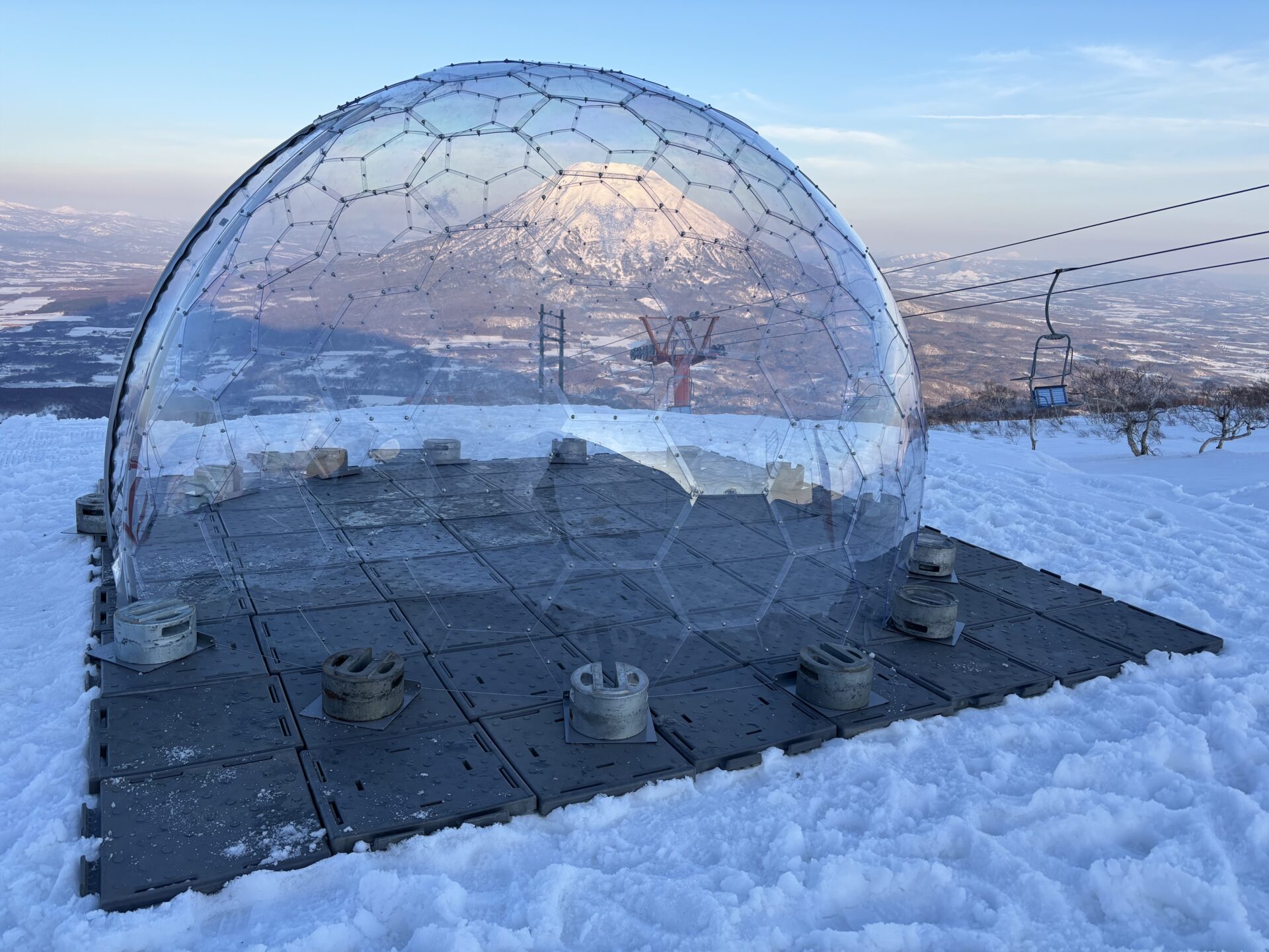 広大な雪景色とダイナミックなイベント空間が融合する中、ドームは景観と調和しながら設置されました。